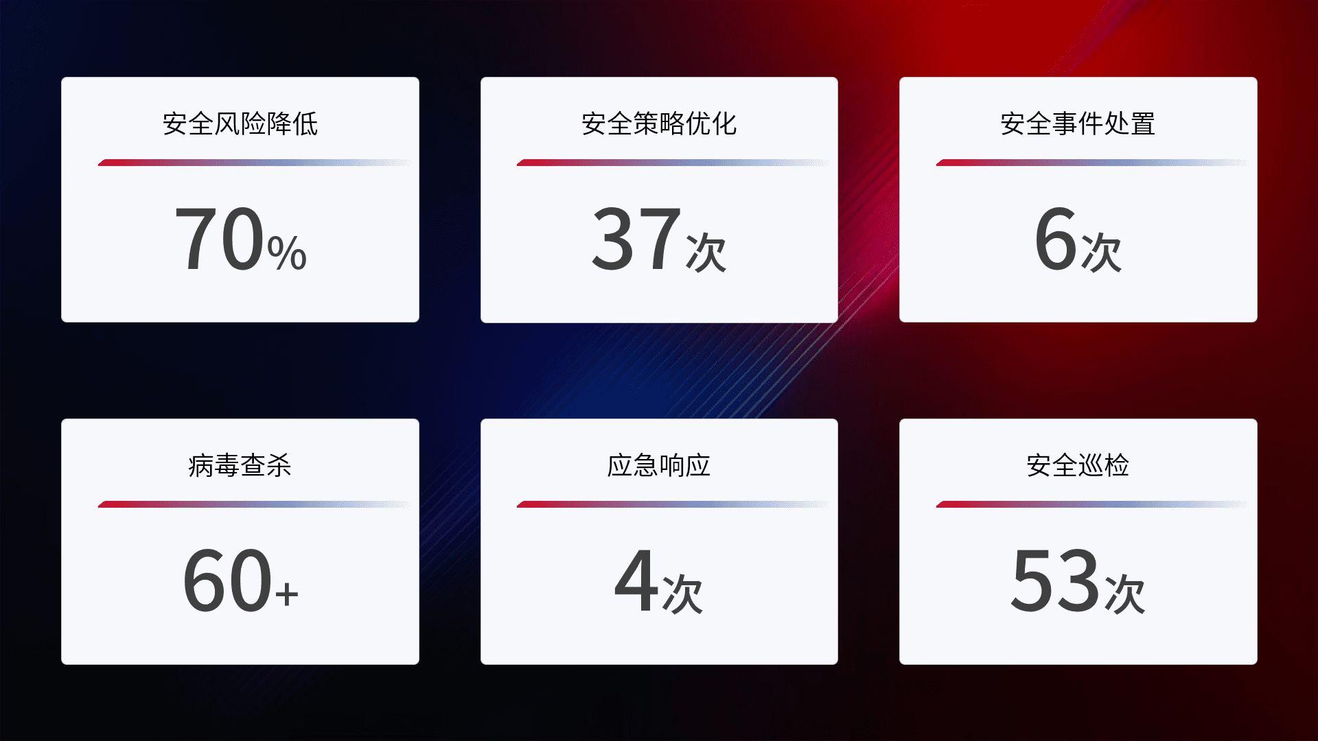 提供全面的安全事件报告体系,,,包括处置报告、、周报、、、、季度和年度总结,,,,结合持续监控,,,,帮助客户深入了解网络安全状况。。